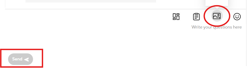 לאחר שתלחצו על האייקון, תוכלו להתכתב עם המוכר וכן לצרף לו קבצים באייקון "תמונה" המסומן: